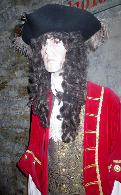 According to the information sheet our tour guide gave us, (once again I was too slow to hear other information) below is "Musketeer Major C.J. von Hüene's Tallinn garrison, 1707-1710 (in the right), musketeer of Harju and Järva rural regiments in Tallinn, 1704-1707. Also the company banner of the Harju rural regiment.